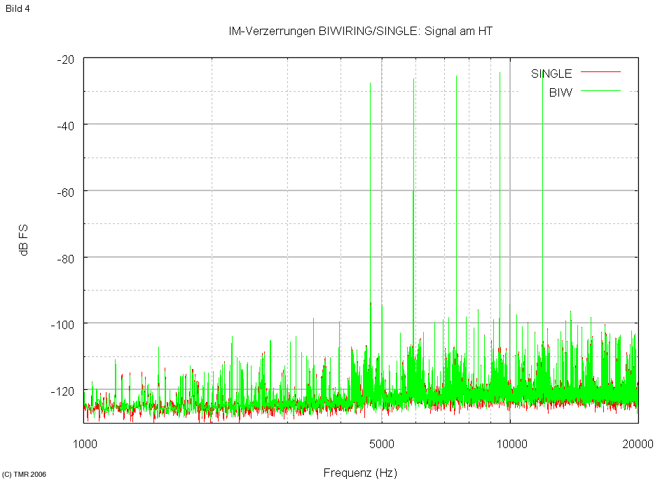 Der entscheidende Punkt ist nämlich, wie sich der Biwiring-Betrieb auf das am Hochtöner ankommende Signalgemisch im Vergleich zum Singlewire-Betrieb am Hochtöner auswirkt. Dieser Punkt bleibt aber bei Jon Rischs Messungen unklar.
